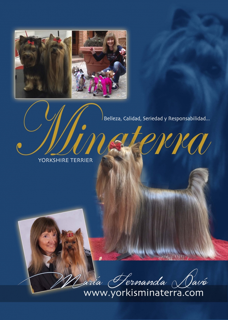 Anuncio para MINATERRA en la revista anual del Club Español del Yorkshire Terrier en 2016. El ejemplar central es, nuestra querida Princesa SHINE.
