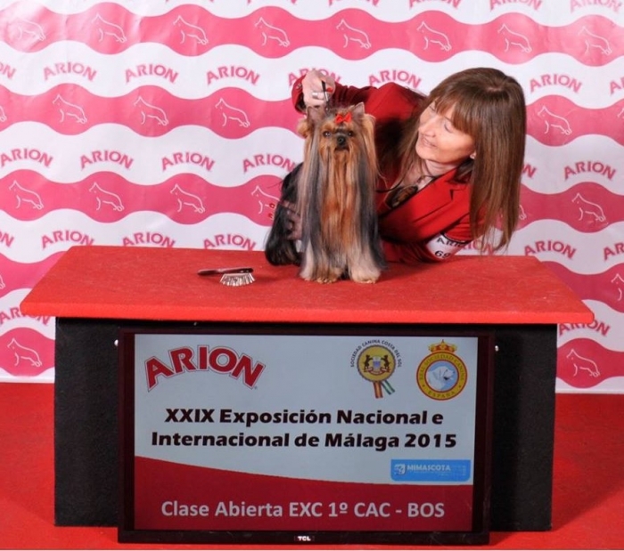 Nuestra MULTI J CH TANA, en la Exposición Nacional de Málaga en Clase Abierta Hembras juzgada por Mrs. Sunsica Lazic, EXC 1º CAC BOS.