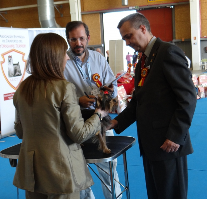 Fantástico dia en Talavera de la Reina donde se celebraba una Monográfica Nacional especializada de la Asociación Española de Criadores del Yorkshire Terrier (A.E.C.Y.T.) Una reunión de amantes de los yorkis con un ambiente fabuloso,amigable y muy divertido, que nos hizo disfrutar a todos los participantes de nuestra pasión en común...la RAZA. Los juicios se hicieron a cargo del prestigioso Juez Internacional , Presidente del Club Español de Terriers y gran cinófilo D. Juan Carlos Rosas Morao,cuya opinión y valoración nos resultó extraordinaria.