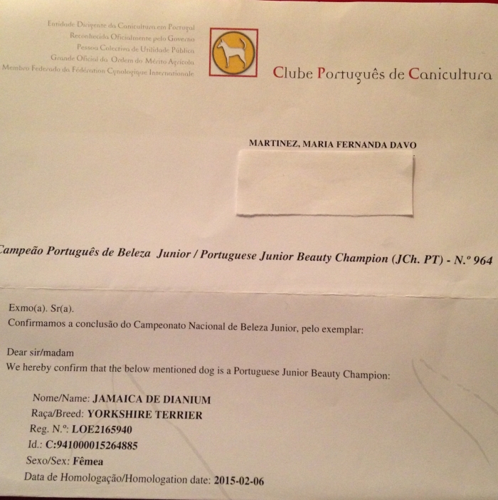MULTI JCH JAMAICA "TANA" de Dianium....... ya es oficial, ya llegó a casa la homologación del titulo de Campeona Jóven de Portugal.