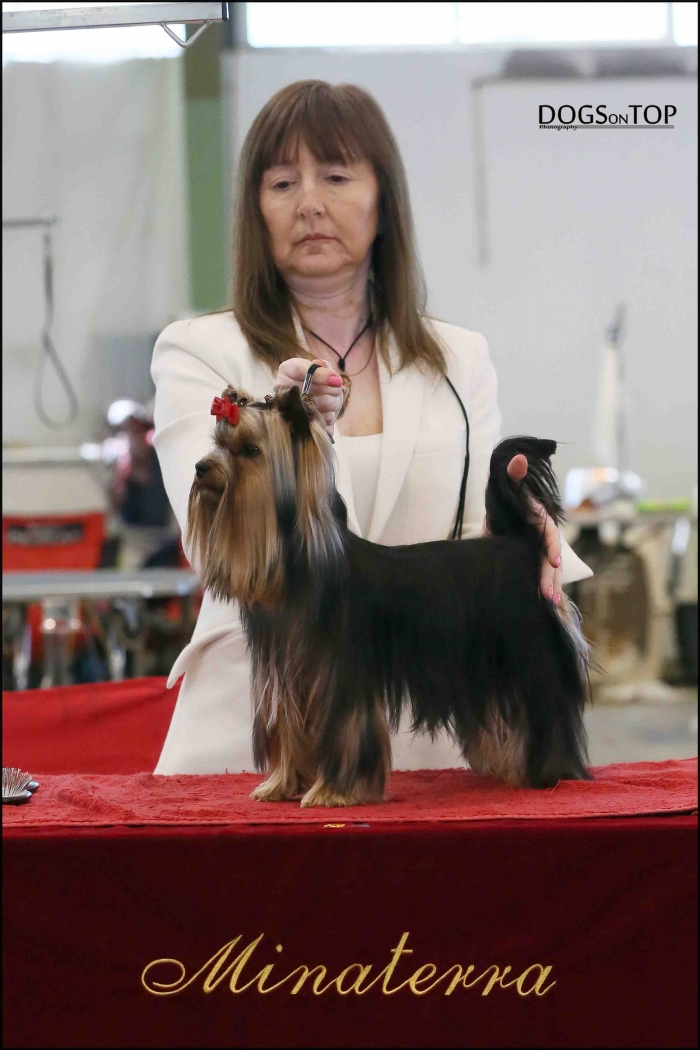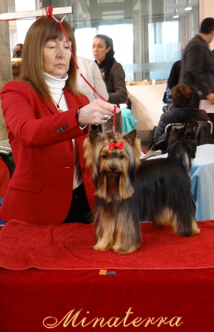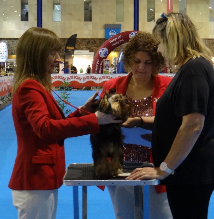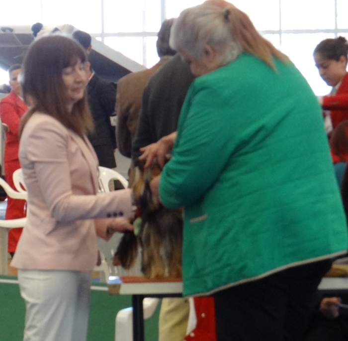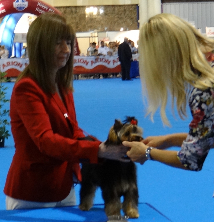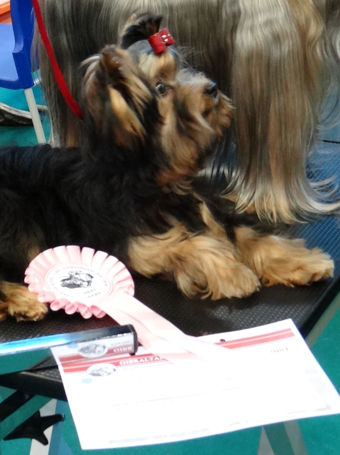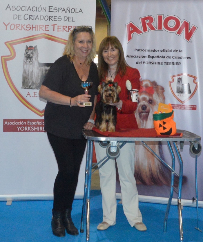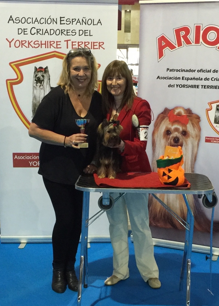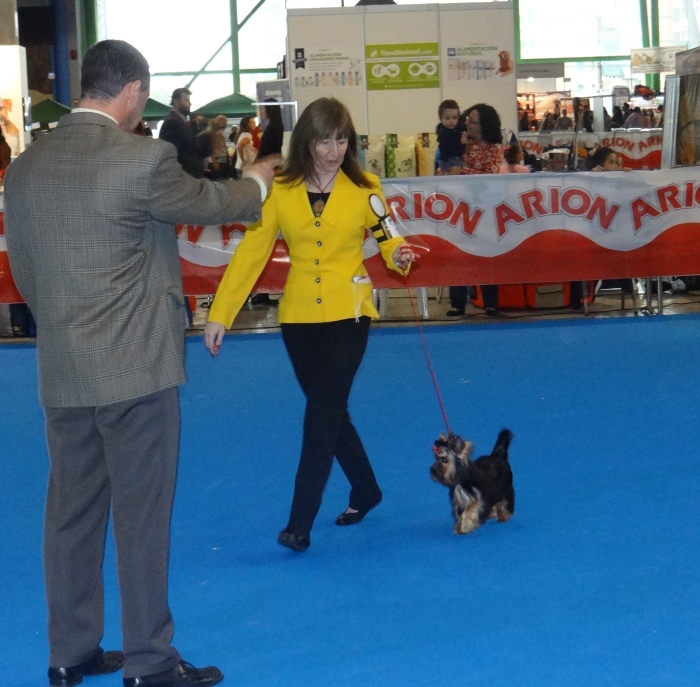 Exposición Especializada del Yorkshire Terrier, que organiza la Asociación Española de Criadores de Yorkshire Terrier ( AECYT ). Pasamos una tarde estupenda y nuestro MAVERICK juzgado por Mrs. Catherine Lebret, prestigiosa Jueza y Criadora de la Raza le otorga: BEST IN SHOW PUPPY.